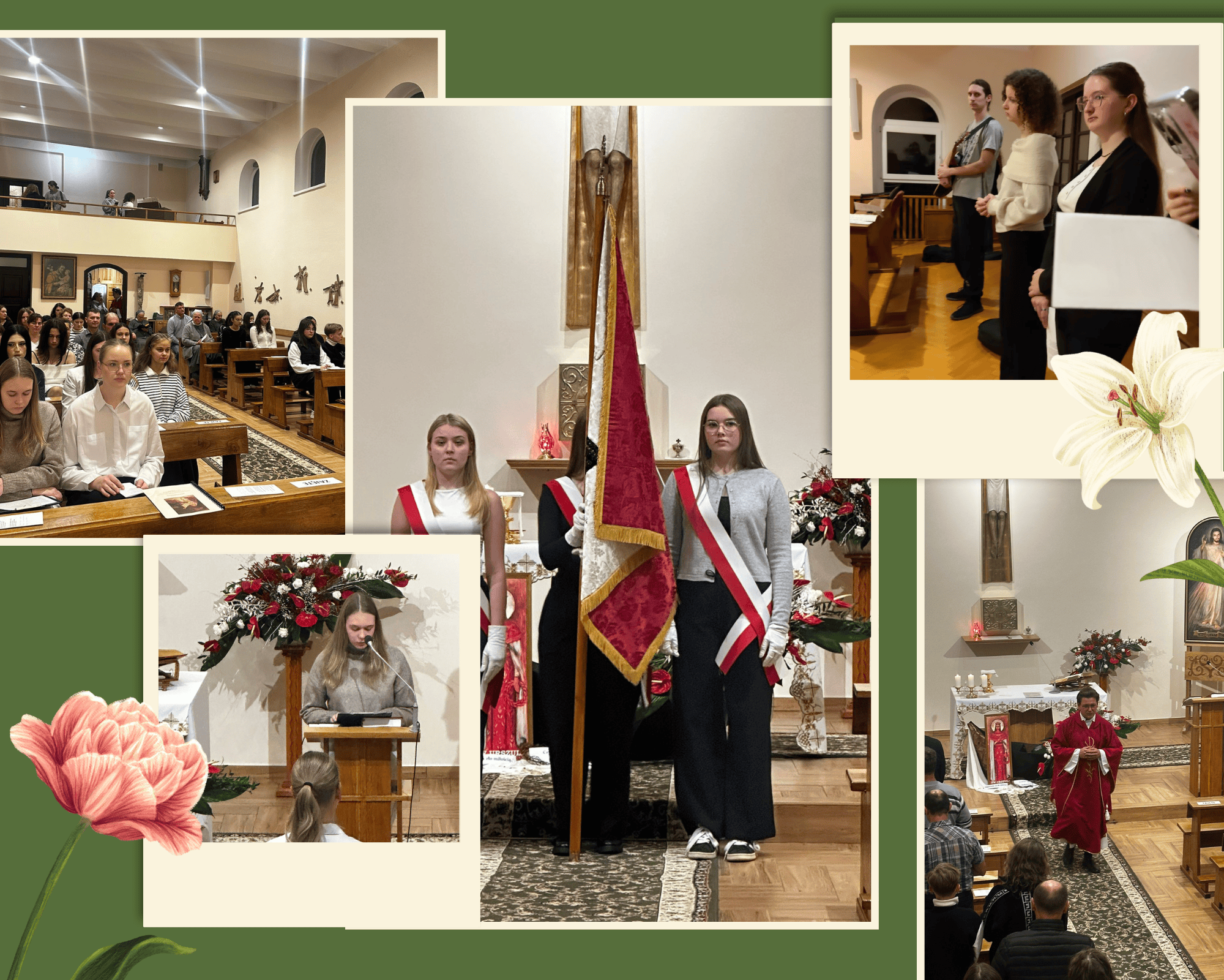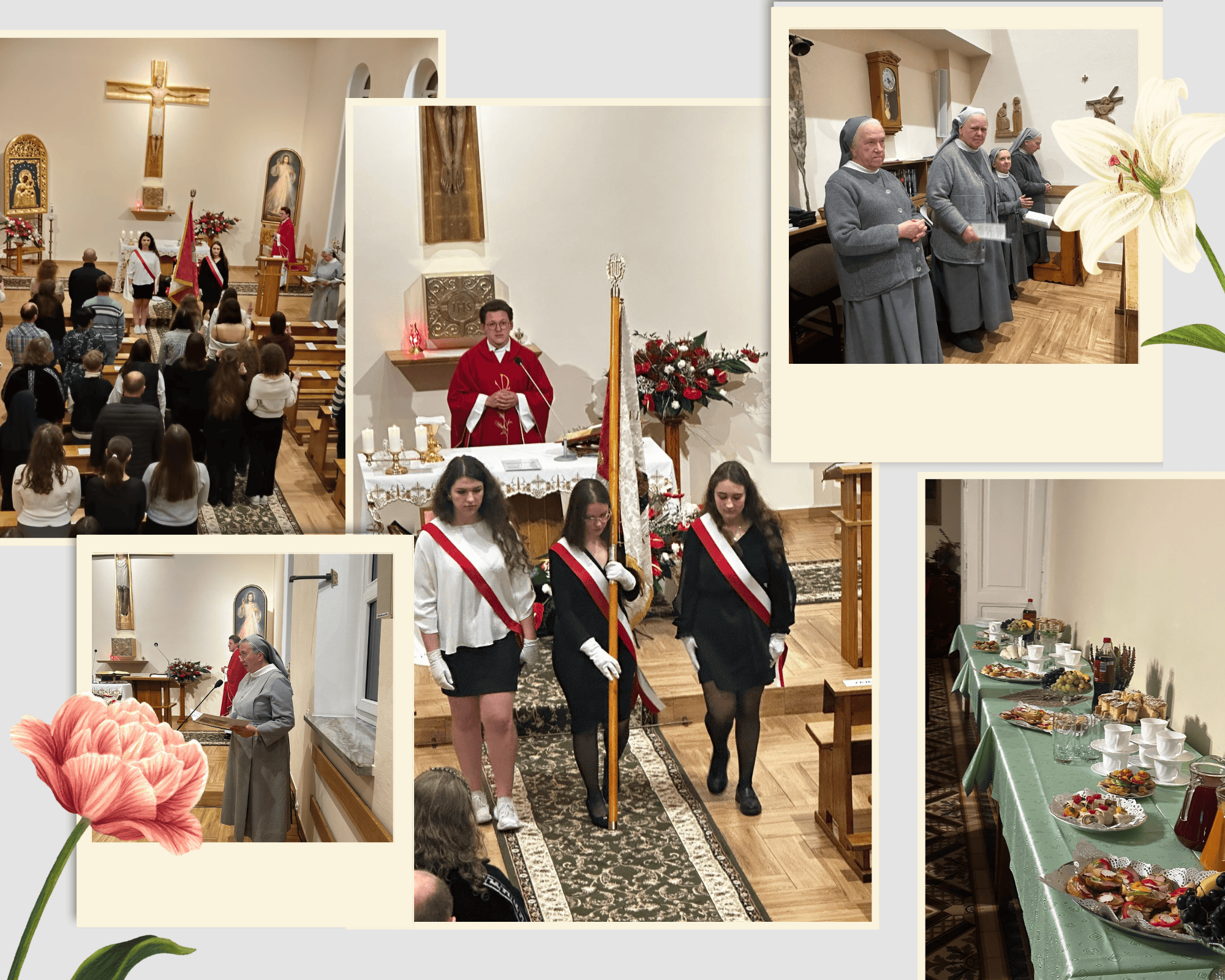 Przygotowania do liturgii zaczęły się już wcześniej – wspólna próba w kaplicy pokazała, jak wiele talentów drzemie w naszych dziewczynach. Każda mogła wnieść coś od siebie i zaangażować się na miarę swoich możliwości. Także został powołany nowy poczet sztandarowy.