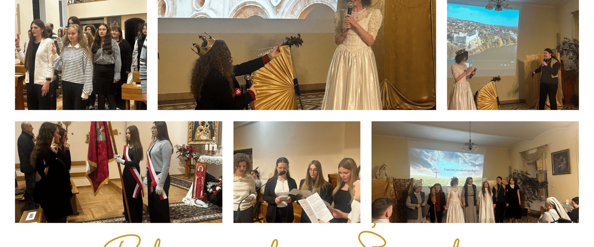 Po Eucharystii przyszedł czas na część artystyczną – przedstawienie pt. „Św. Urszula – fałsz czy prawda?”. Dziewczyny w zabawny, a zarazem refleksyjny sposób opowiedziały historię świętej, pokazując, że nawet w średniowieczu nie było łatwo! Okazało się, że św. Urszula nie chciała wyjść za mąż za księcia z trudnym charakterem i niezbyt urodziwym nosem, a Attyla – jak to Attyla – miał swoje problemy z przemocą… Na szczęście wszystko skończyło się dobrze, a morał był jasny: odwaga bycia sobą i wierność wartościom zawsze się opłaca!