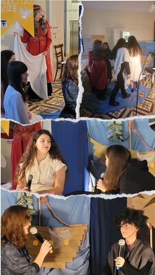 Po uroczystym odśpiewaniu Hymnu do św. Urszuli przeszliśmy do salki jadalnej, gdzie odbyła się inscenizacja przygotowana przez Siostry i dziewczyny z bursy. W przedstawieniu zaprezentowano dwa sztandary: święta Urszula reprezentowała sztandar Królestwa Bożego, zaś kusiciel – obóz Szatana.