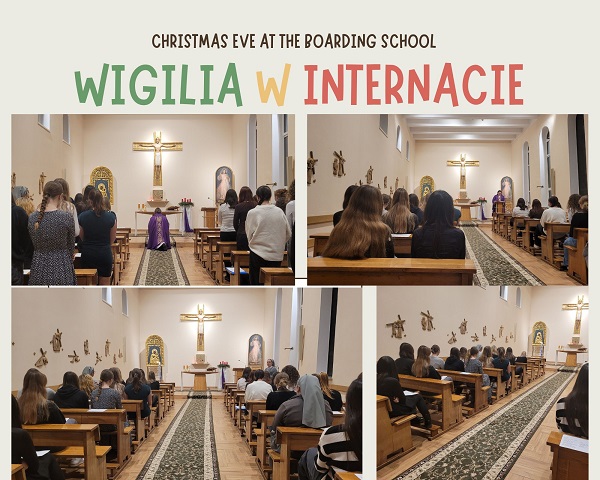 Wieczerza wigilijna zgromadziła wszystkie mieszkanki bursy, Siostrę Dyrektor, Siostry Wychowawczynie oraz Siostry Postulantki. Wspólnie dzieliłyśmy się obecnością i rozmowami, które pozwoliły nam poczuć ducha wspólnoty.